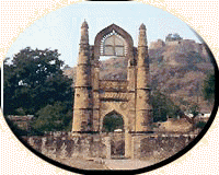 Mandu. The Koshak Mahal is a ruined Muslim palace that is still being maintained. Today the town is chiefly known for its gold brocades and saris. |