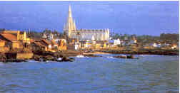 India's Land's End. Kanyakumari or Cape Comorin is unique in being surrounded by three seas, the Bay of Bengal, the Indian Ocean and the Arabian sea, and the confluence is called 'Thriveni Sangamam'. Here one can get a breath-taking view of the Sunrise and Sunset at their best. The multicoloured sand is yet another unique feature of the beach here. Kanyakumari is a famous pilgrim centre, too. Rameswaram The serene beach and shallow water here are ideal for swimming and sunbathing.